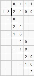 Divide 2 by 18 and you should get 0.1 repeating.