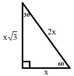 We then see (from the template) that the lenght opposite to the 30 degree angle is equal to x and therefore our answer is just 3√3