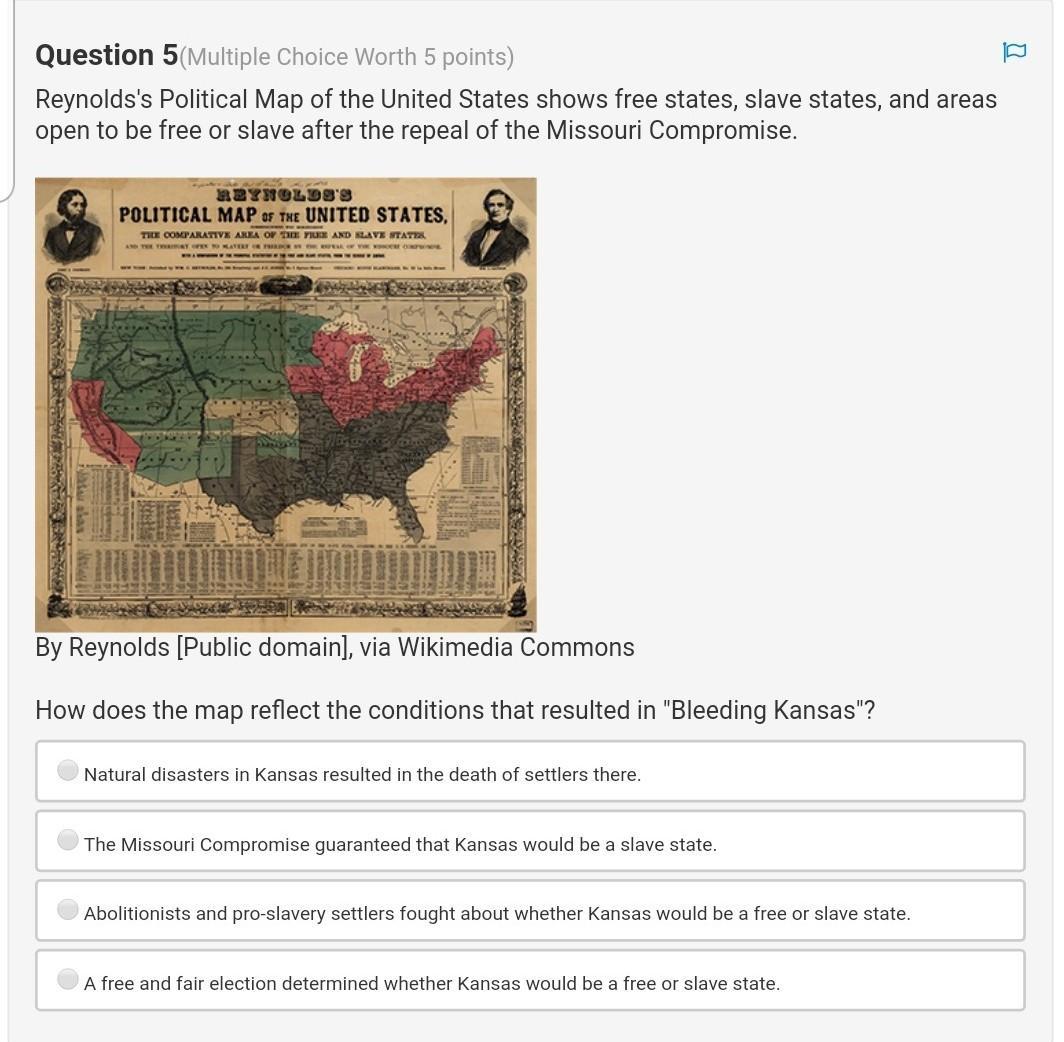 • How does the map reflect the conditions that resulted in "Bleeding Kansas"?brainly.com/question/13109226