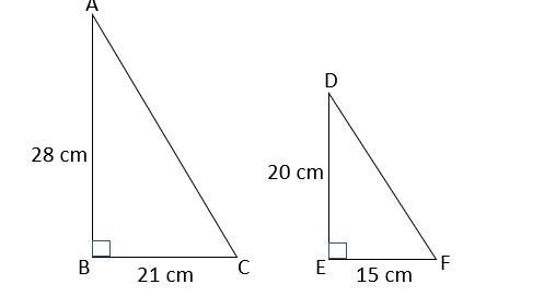 The Side AB (28 cm) has been scaled to side DE (20 cm)