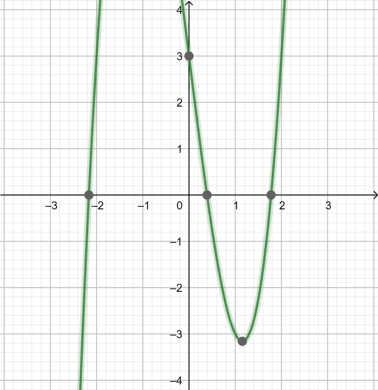 The difference between the graph of f(x)=2x^3-8x+3 and g(x)=x^3-4x will be described as follows: The graph of f(x)=2x^3-8x+3 is the first one The graph of g(x)=x^3-4x is the second one From the two graphs we see that: