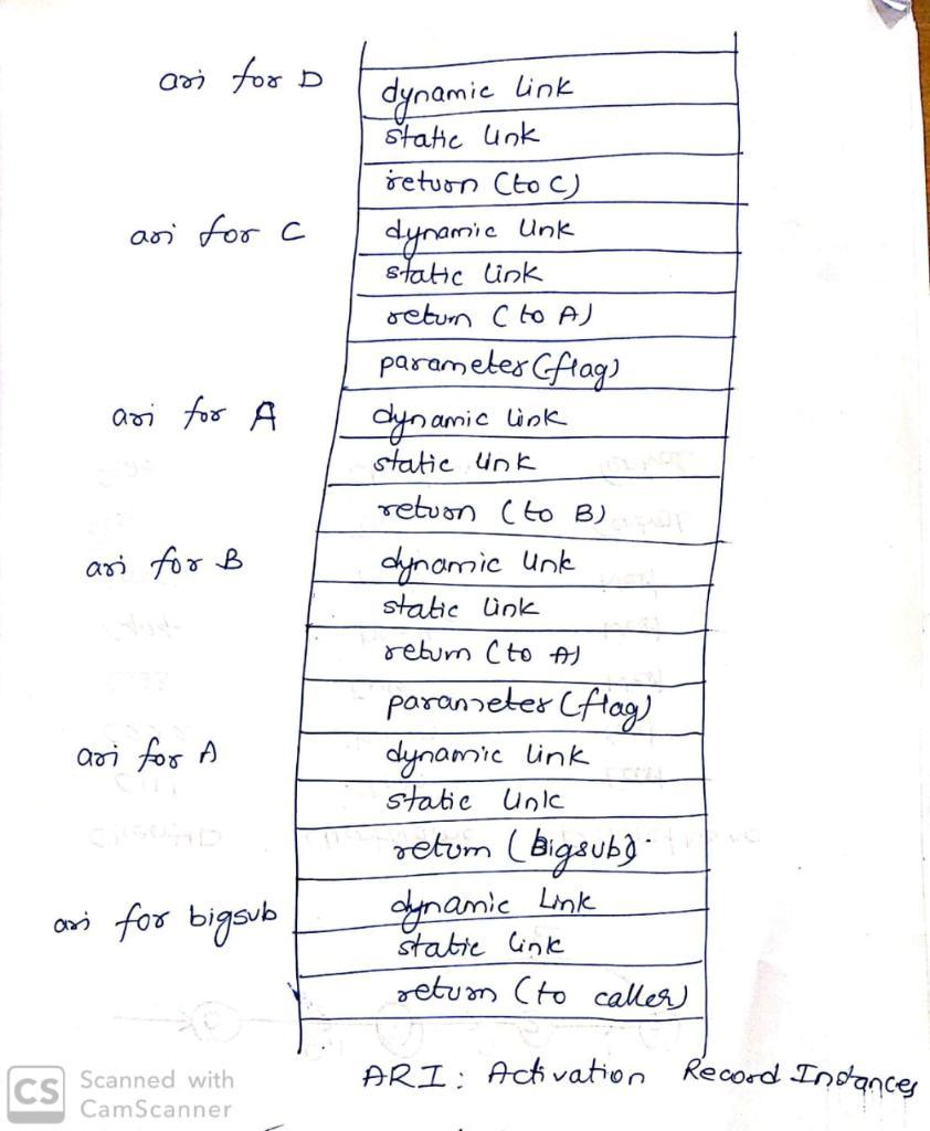 The chain of static links is being referred to as static chain if it connects a particular activation record instances (ari) in the stack.