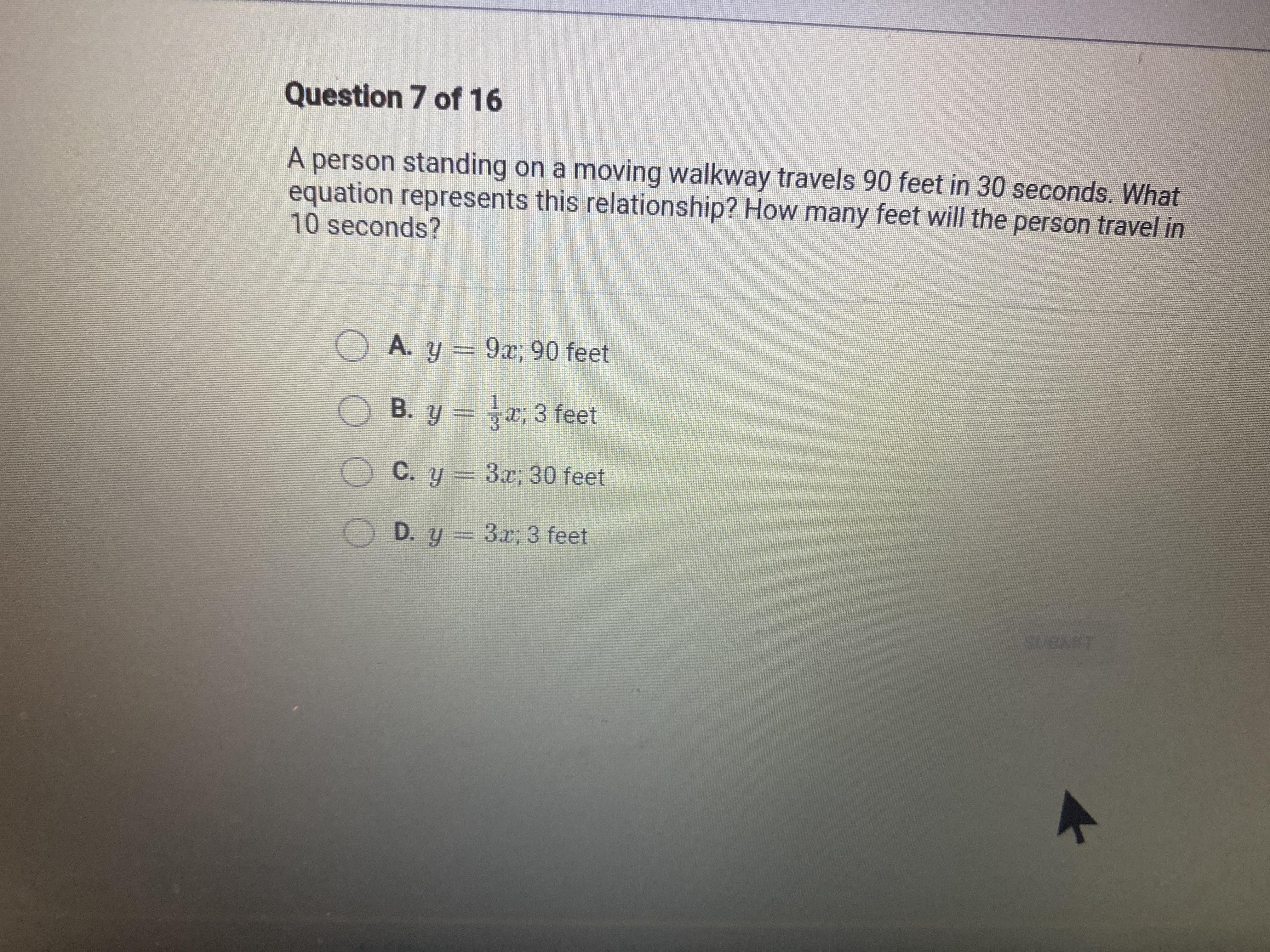 The speed of the walkway is 3 feet per second. Which means that the walkway covers 3 feet in a second