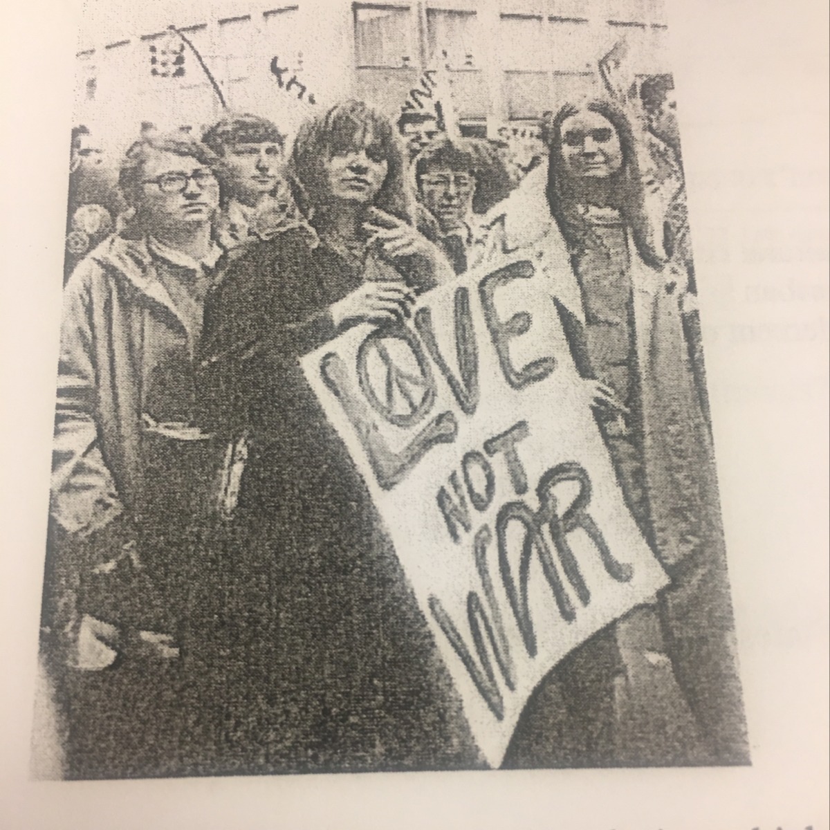 I believe this picture refers to the Vietnam War. During and before the war they were a lot of people protesting, much like this sign.