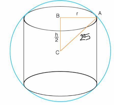r² + (h/2)² = 25²