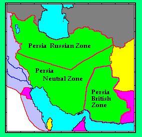 In 1907. The Imperial ambitions of Britain and Russian were conciliated, as a division took place, the north of (Today Iran) became under influence of Russia, the south becoming influenced by England and in the middle the formation of a puppet state that was favorable to both Empires.