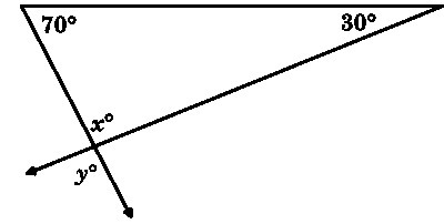 First we apply the vertical angles theorem to transfer x into the triangle. That is,