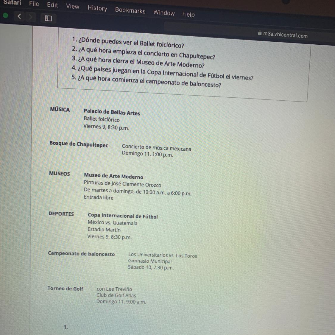 1) Por la mañana..2) Primero..3) Despues. 4) Entonces..5) Antes ..6) Por Ultimo......7)Durante el dia ..8) Mas tarde..9) Por la tarde..10) Por la noche...11) Mas tarde..12)Antes de ...