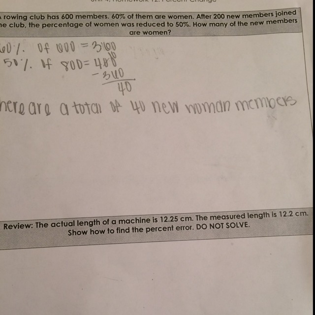First, calculate the difference between two length. The difference is the error of measurement. the difference = actual - measured the difference = 12.25 - 12.2 the difference = 0.05