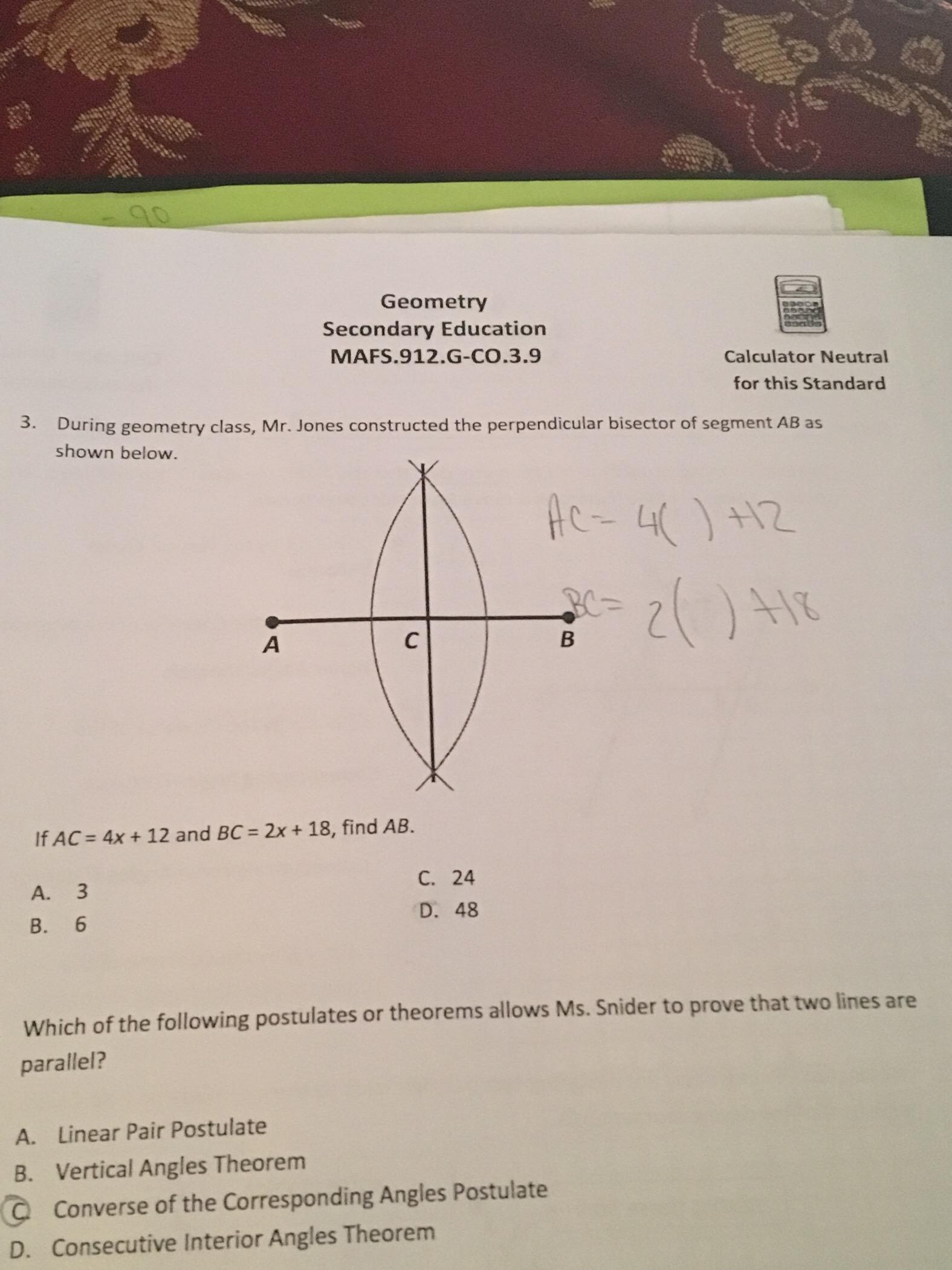 AB = 2AC = 2(4x + 12) ← substitute x = 3