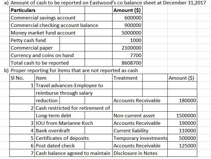 The controller for Clint Eastwood Co. is attempting to determine the amount of cash to be reported on its December 31, 2017 bala