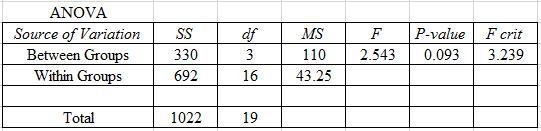 Use Excel to perform the one-way ANOVA.