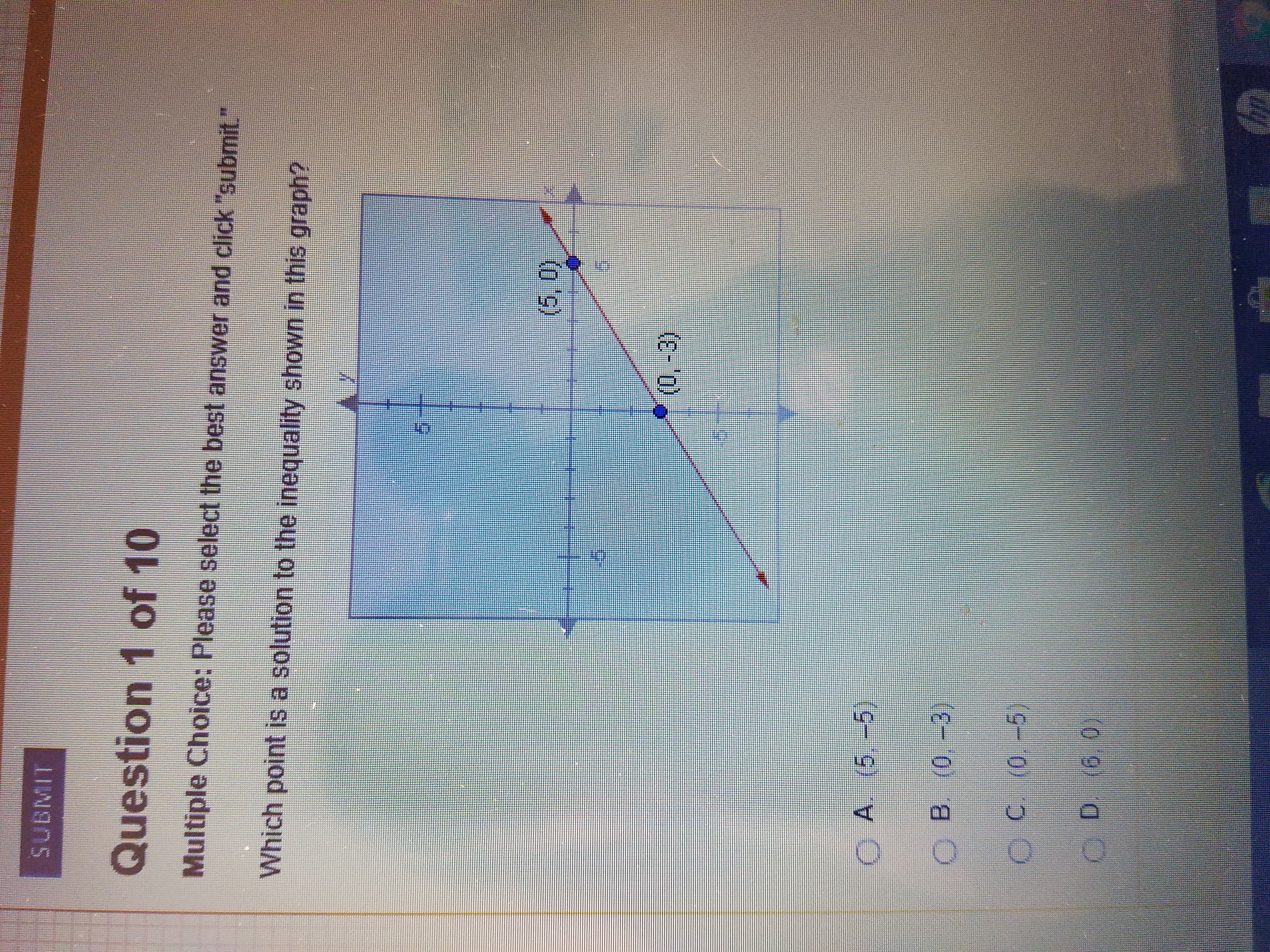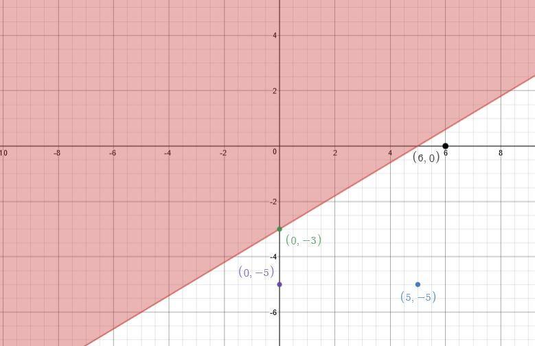 Thus, only (0, -3) lies in the area of shaded portion.
