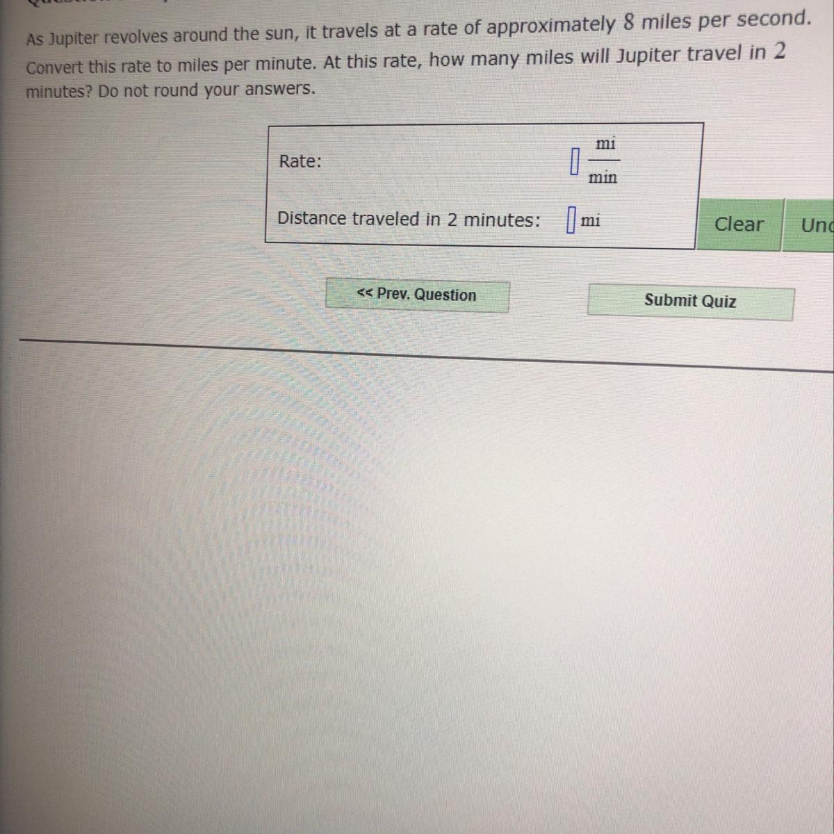 ute. At this rate how many miles will Jupiter travel in 2 minutes? Do not round your answers