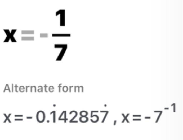 X=- 1/7 or x=-0.142857 , x= -7 -1