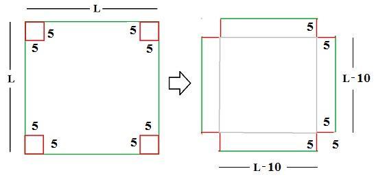 Now, consider that you are removing from each corner of that square a smaller square of surface 5