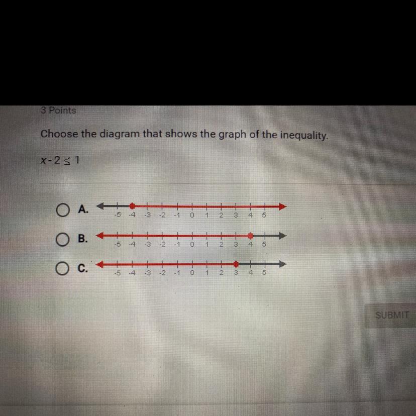 If x is less than or equal to 3, the graph should be decreasing, starting from 3. (C)