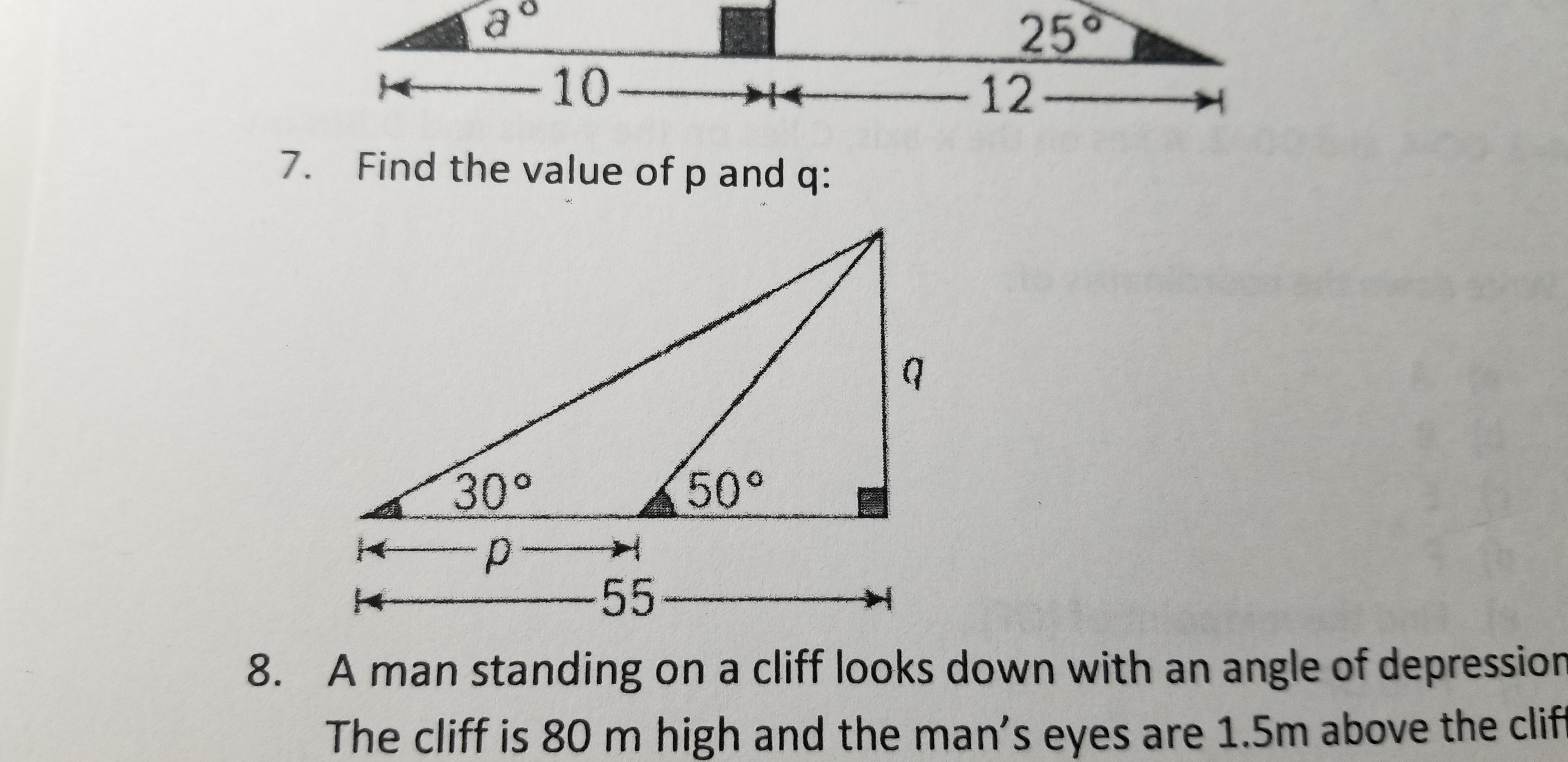 Considering the smaller right angle triangle, with 50° as the reference angle, the opposite side is q and the adjacent side is 55 - p