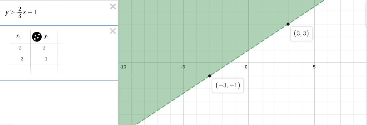 y>2/3 x +1 is your answer (B)