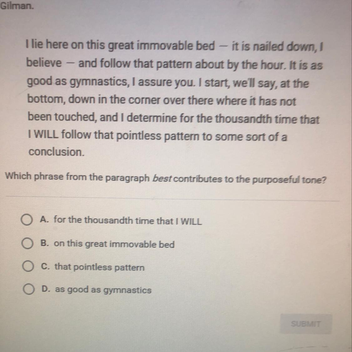 The correct answer is B A worn yellow quilt was lying at the foot of the antique bed, a gift from their grandmother.