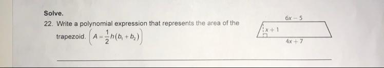 Write a polynomial expression that represents the area of the trapezoid [a= 1/2h(b1+b2)]