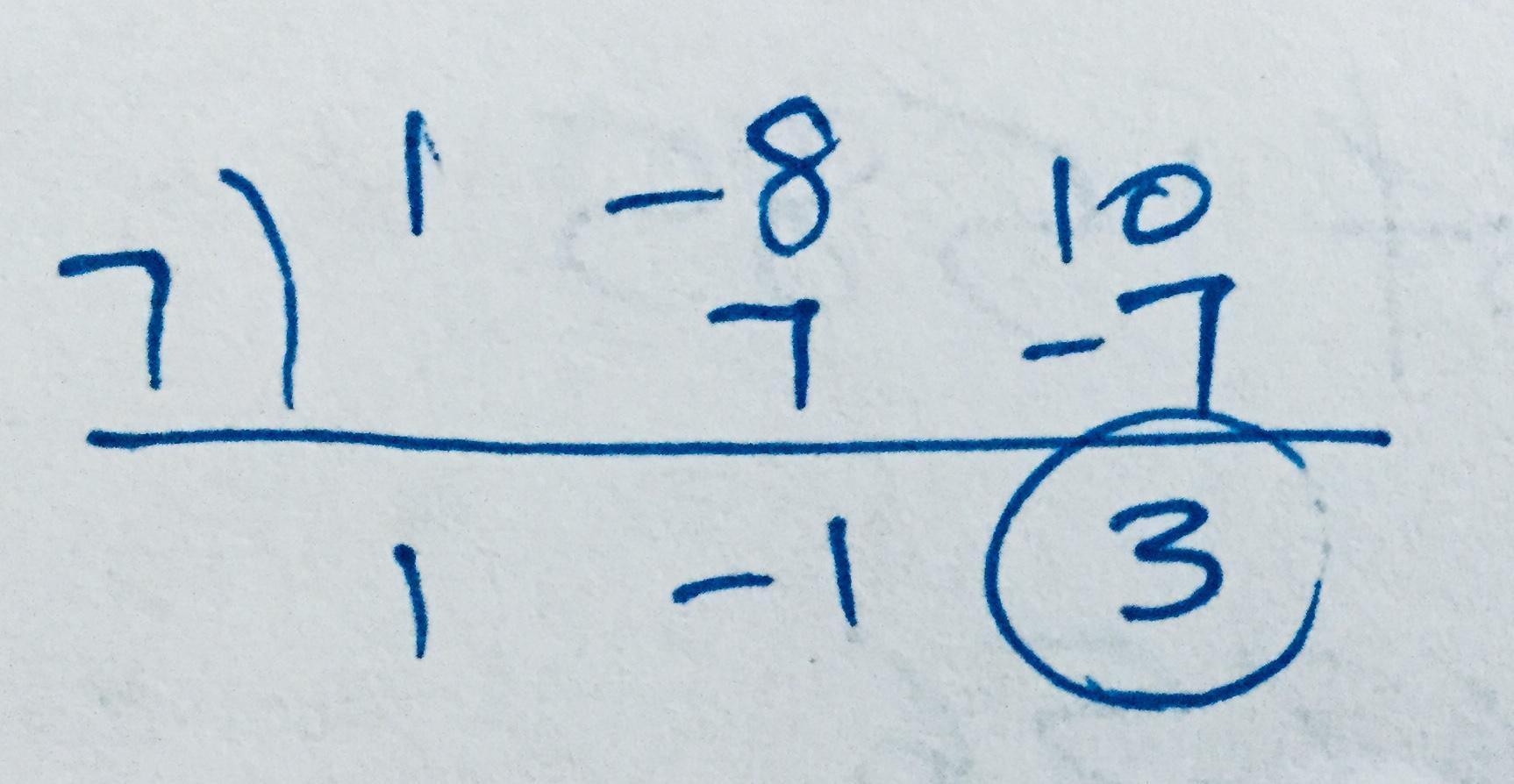 As you know, the number on the bottom row is multiplied by the divisor to get the next middle-row number to the right. Top and middle rows are added to get the bottom row.