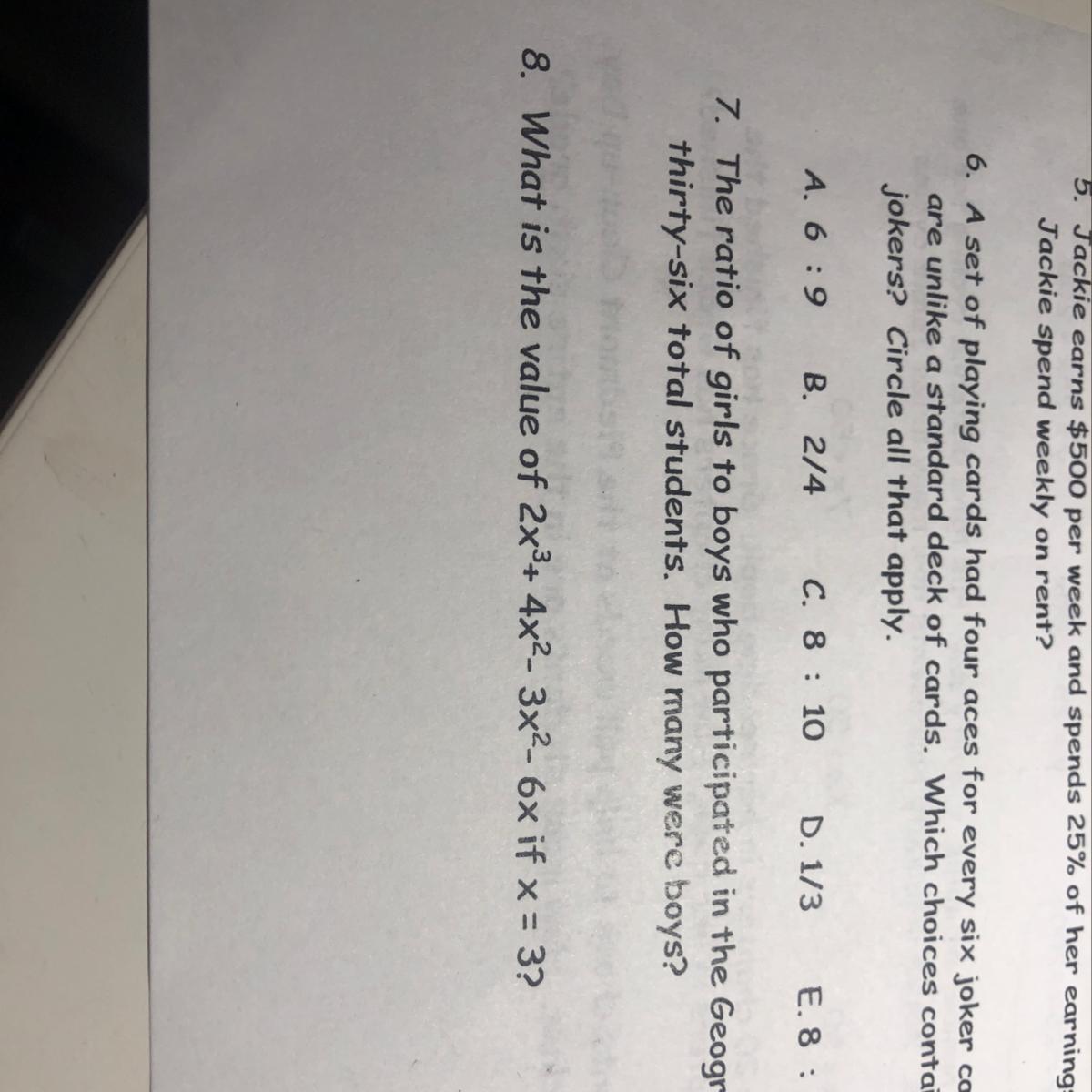 2(3^3) + 4(3^2) - 3(3^2) - 6(3) -- "Parenthesis meaning multiply what's in the parenthesis to the number in front of it"
