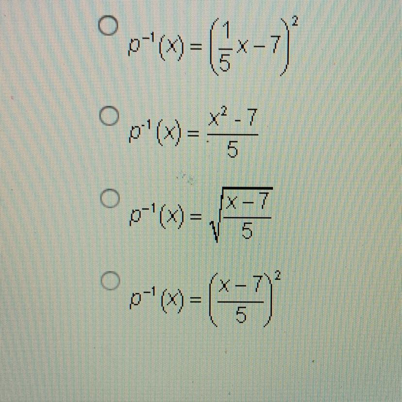 Which of the following functions are the inverse of p(x)= √5x+7 ?