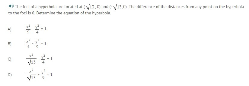 The distance from center to one vertex is half the difference of the distances from a point to either focus. That is, the distance from center to the vertex is 3 on the x-axis, so the x-term is (x/3)² = x²/9.
