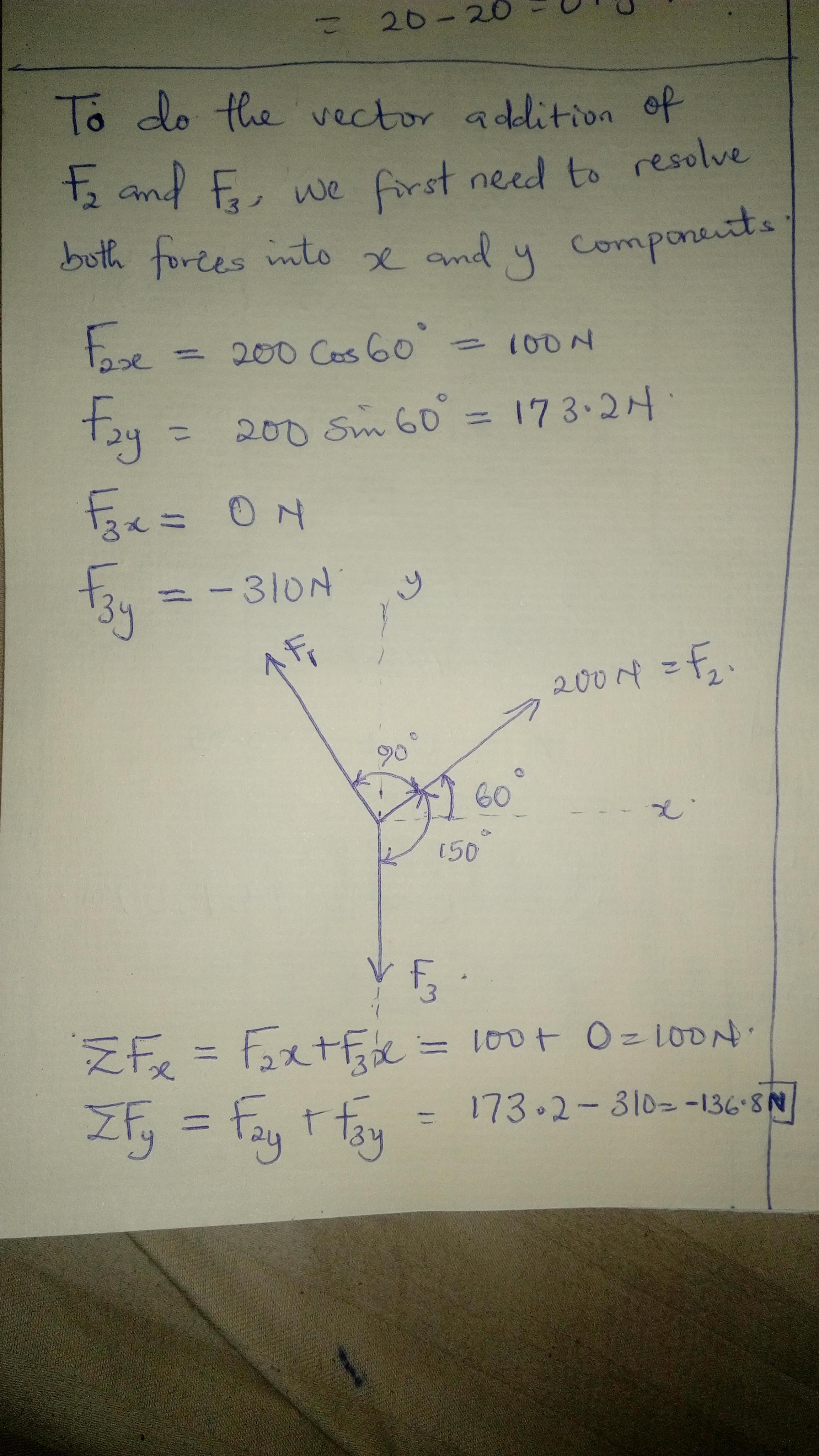 method: total force in the right hand direction is 100N and total force in the left hand direction is 125N. To get the net force, we add forces if they are in the same direction and substract if they are in opposite directions. since 100N and 125N are in opposite directions, we substract the larger value from the smaller value. Then we get 25N in the left hand direction as the final answer.