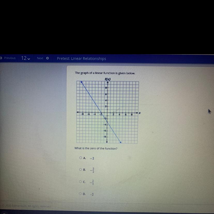 I'm pretty sure it B -3/2 because u start at -2(x) and go down 3 and right 2 and end at -2(y)