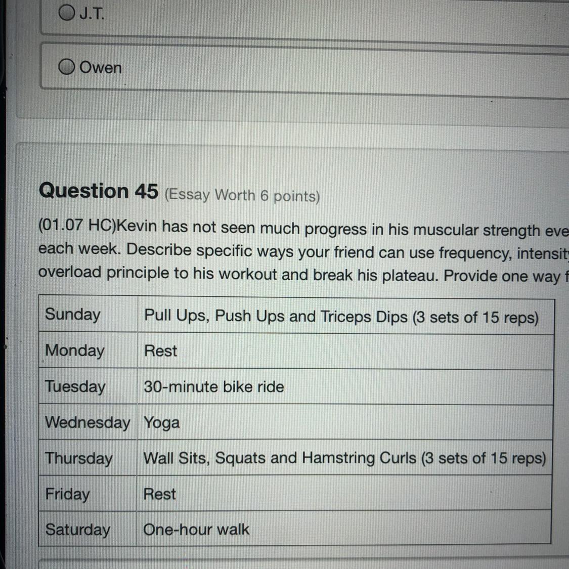 Sunday -- start the week off strong, instead of 30 mins push for 45 to get that extra push or instead of 30 mins cut it to 15-20 mins of high intensity