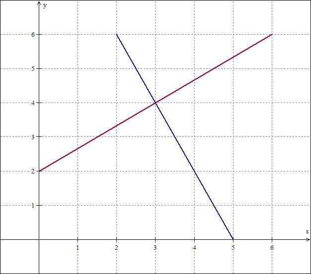 To find the simultaneous solution, set the <em>y's </em>equal.