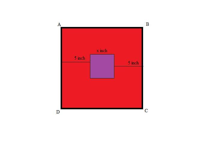 Required area = Area of square <em>ABCD </em>- Area of <em>purple square