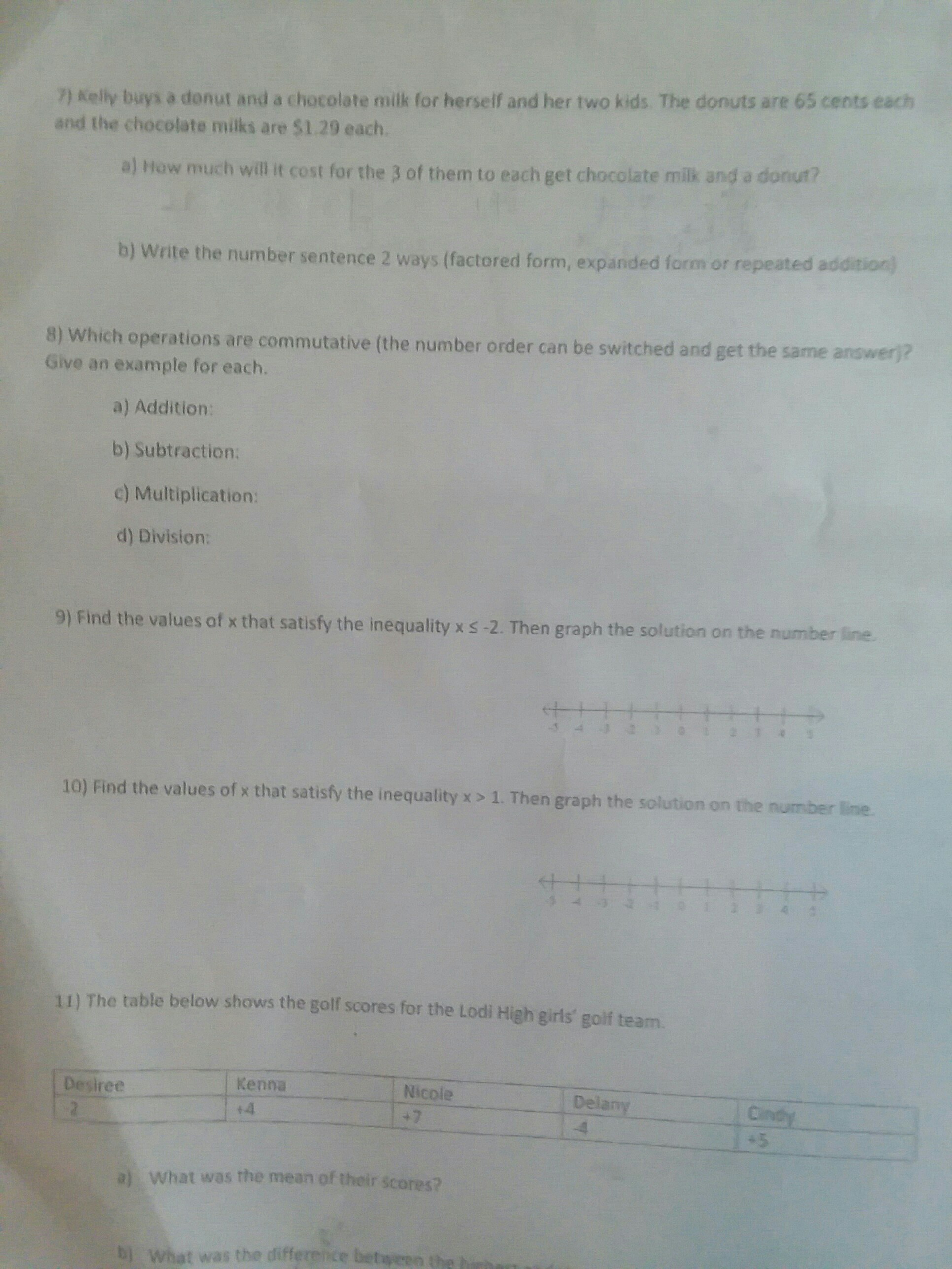 11 question table: -2, +4, +7, -4, +5