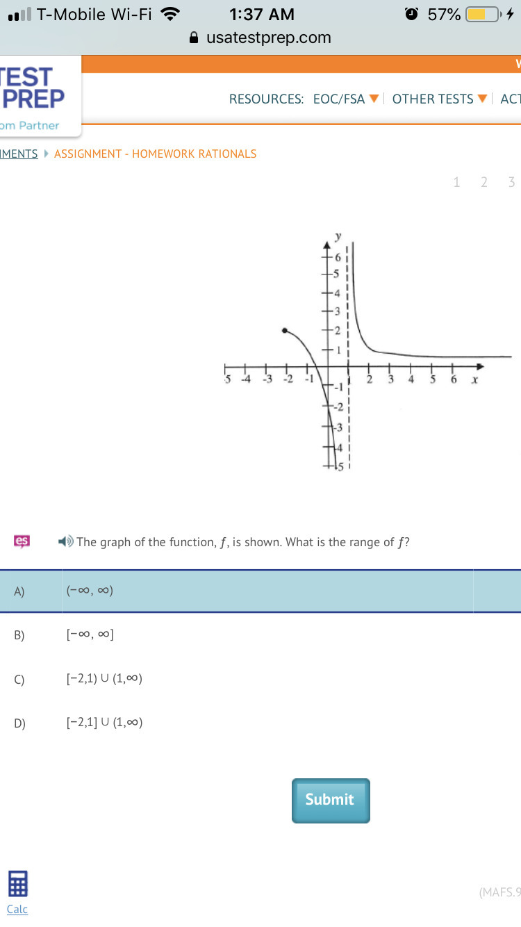 Also, in interval notation you put parenthesis around numbers the function isn't equal to and brackets next to a number that the function is equal to, and since no function actually contains the value infinity, you put parenthesis around it.
