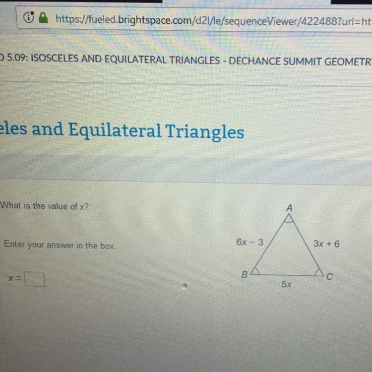 Note that this triangle has 3 congruent angles. Therefore, it is an equilateral triangle. So, the sides will also be congruent.