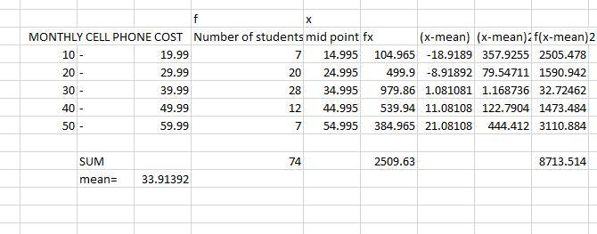 Hence the standard deviation of mobile cost is 10.925.