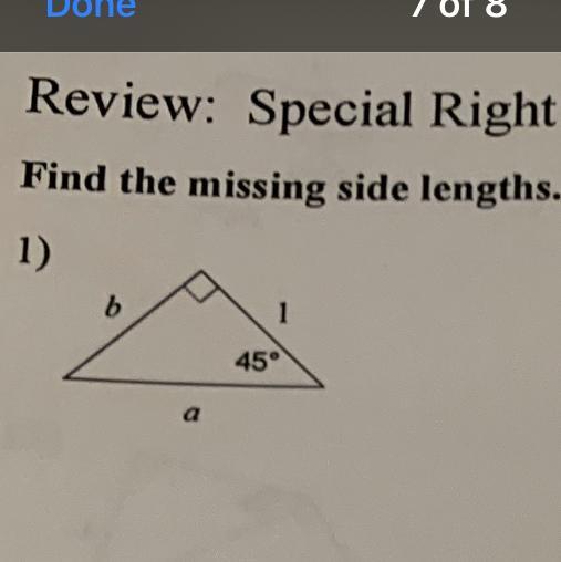 Accordingly the other leg b is one unit ⇒ b = 1
