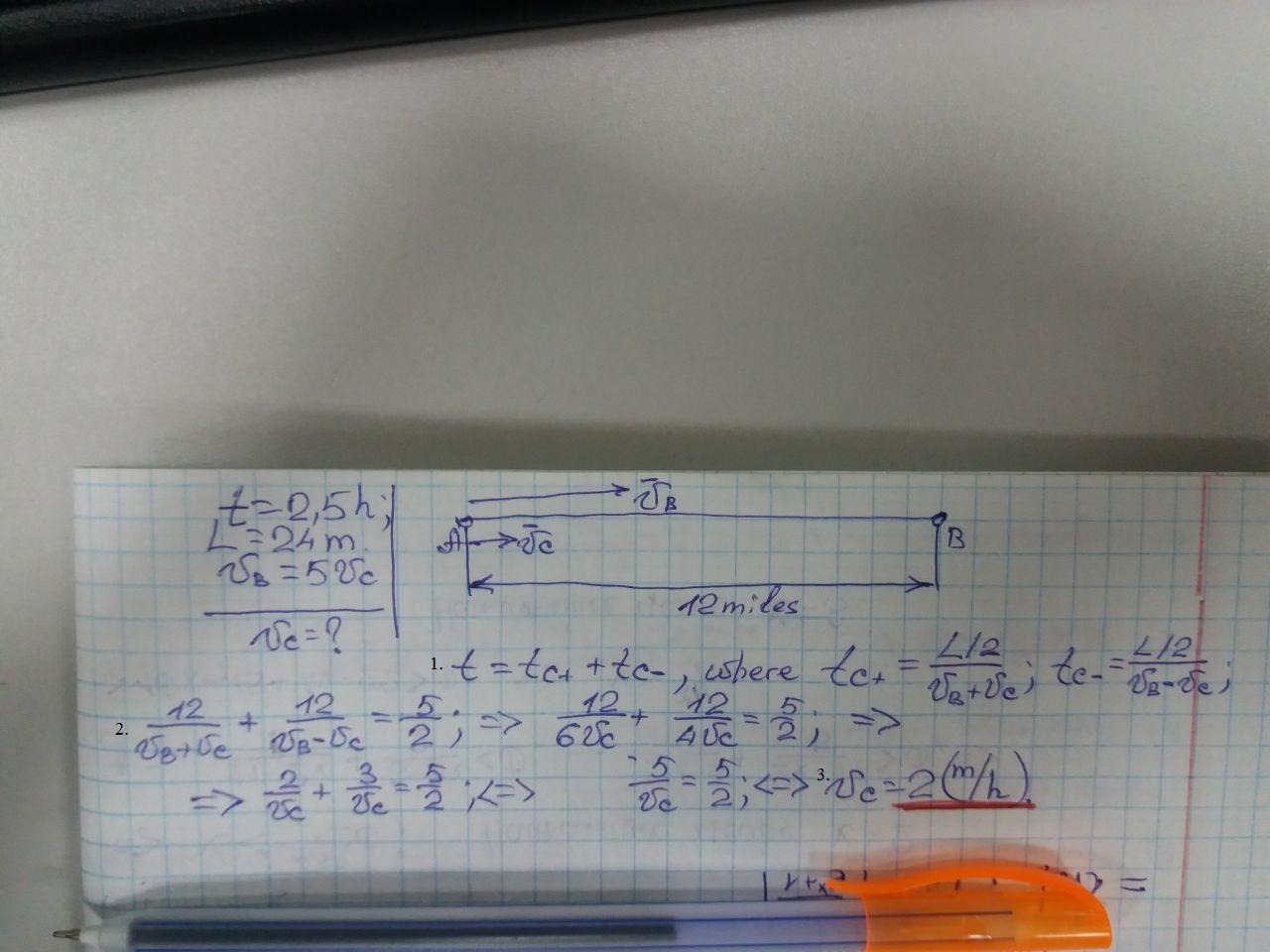 ⇒ The speed in upstream = 5x - x = 4x miles per hour,
