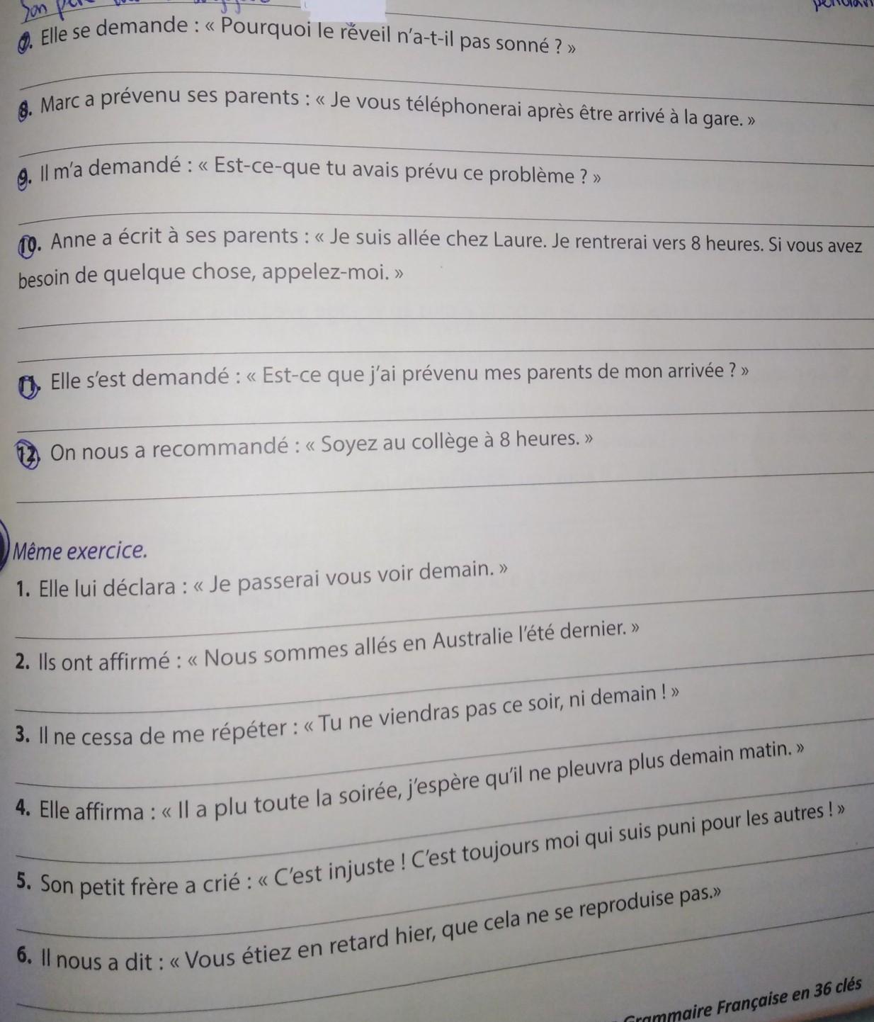 8. Marc a prévenu ses parents qu'il les téléphonerait après être arrivé à la gare.