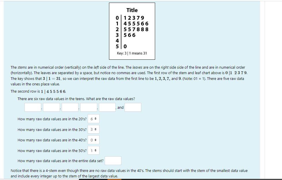 *There are <u>6</u> raw data values in the 20's represented in the 3rd row. They are: 25, 25, 27, 28, 28, and 28