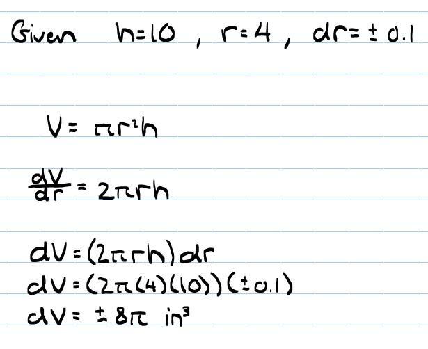 Derive the volume with respect to the radius (dV/dr) so that you can solve for their changes.