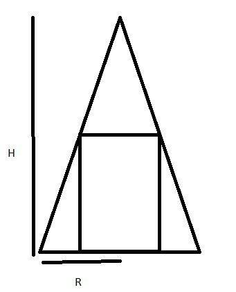 For a cylinder of radius r, its height h can be express using the properties of similar triangles: