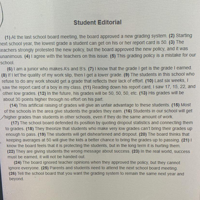 The last statement i.e. 'this grading difference creates an unfair comparison between students' can be added to the end of third paragraph to back the ideas presented in the paragraph. This statement is functioning as the conclusion of the ideas offered in the text as it reiterates the key ideas of the argument precisely and wraps up the paragraph effectively. Thus, <u>it not only supports the idea that 'the artificial raising of grades is proposing an unfair advantage to the students' but also reinforces it into the readers mind that 'difference in grading leads to a biased and discriminatory comparison among students</u>.' Thus, <u>option D</u> is the correct answer.