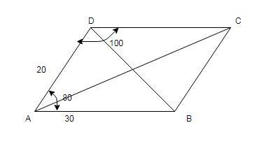 AC² = 20² + 30² - 2 × 30 × 20 cos 100°