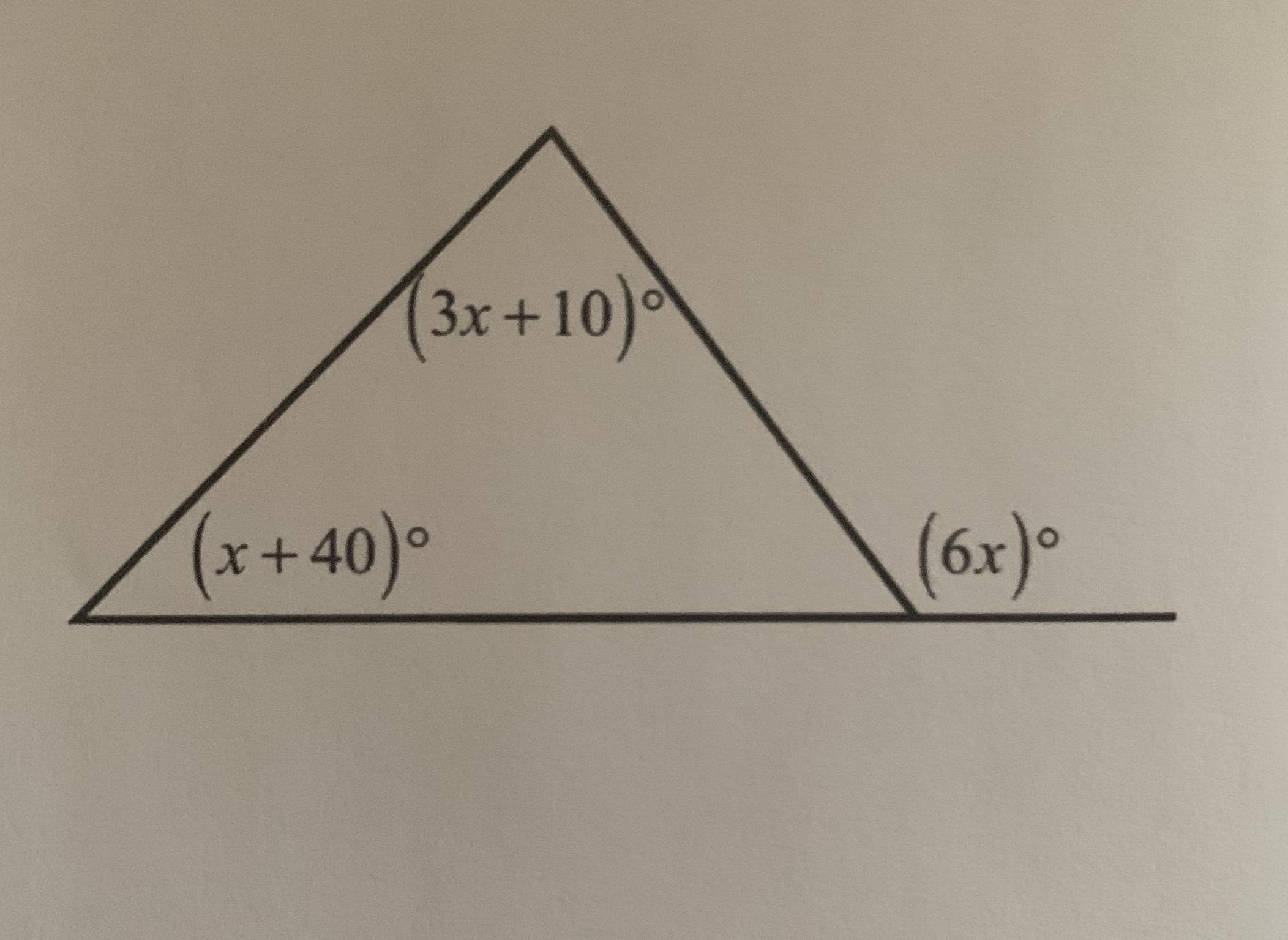 You look at how many ‘x’ there are then you add them together 6x+3x+x+10+40=180