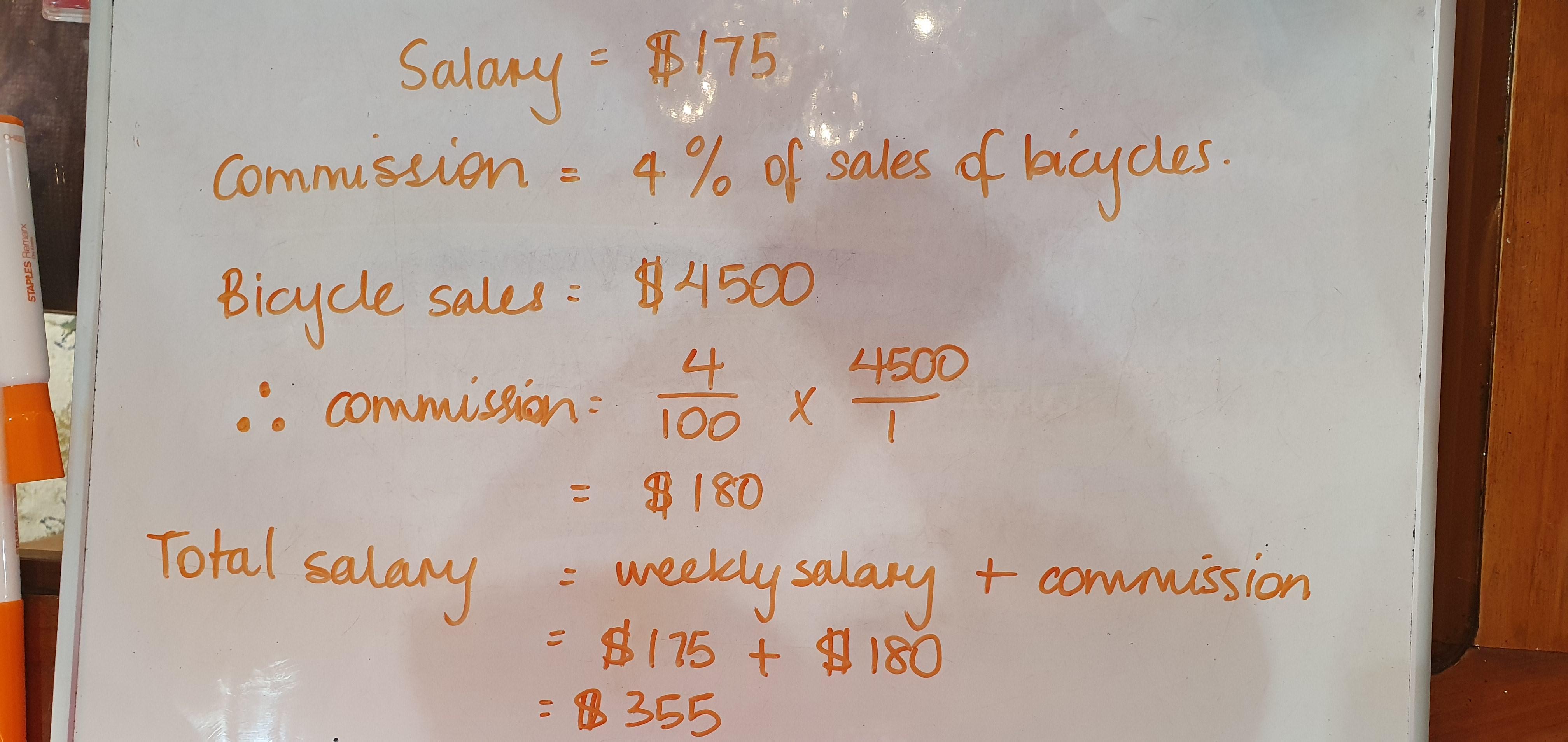 A salesperson earns a weekly salary of $175 plus a 4% commission on the