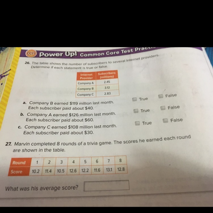 The way you solve 26 is by taking the amount the companies earned and dividing it by their subscribers.