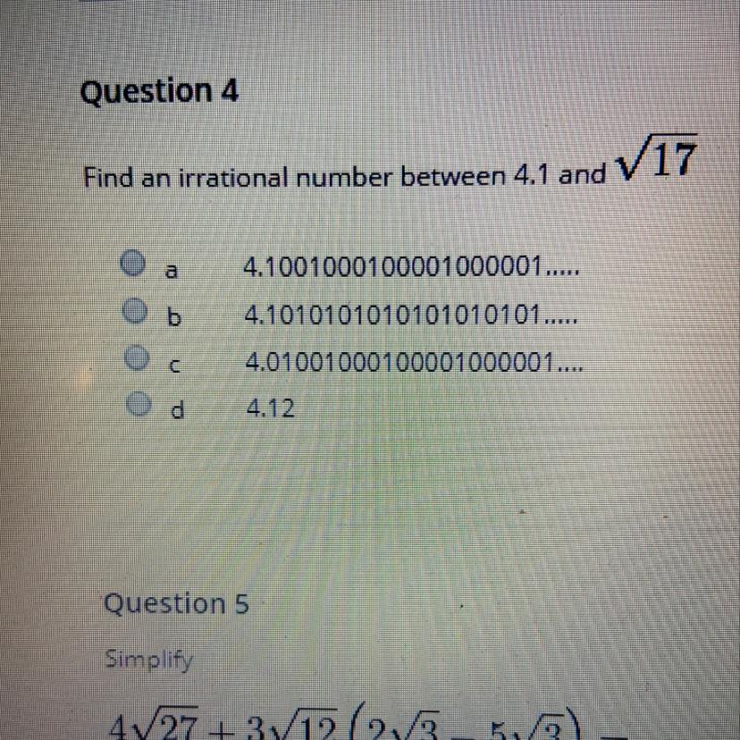 Therefore, we need to find an irrational no. between 4.1 and 4.12